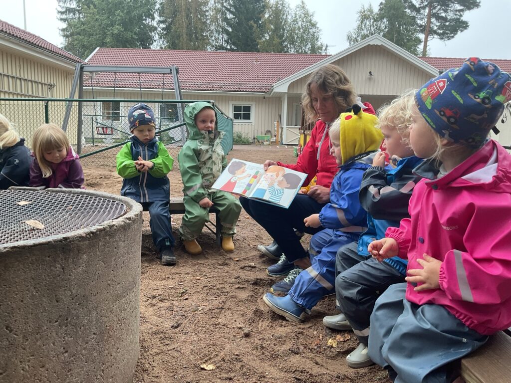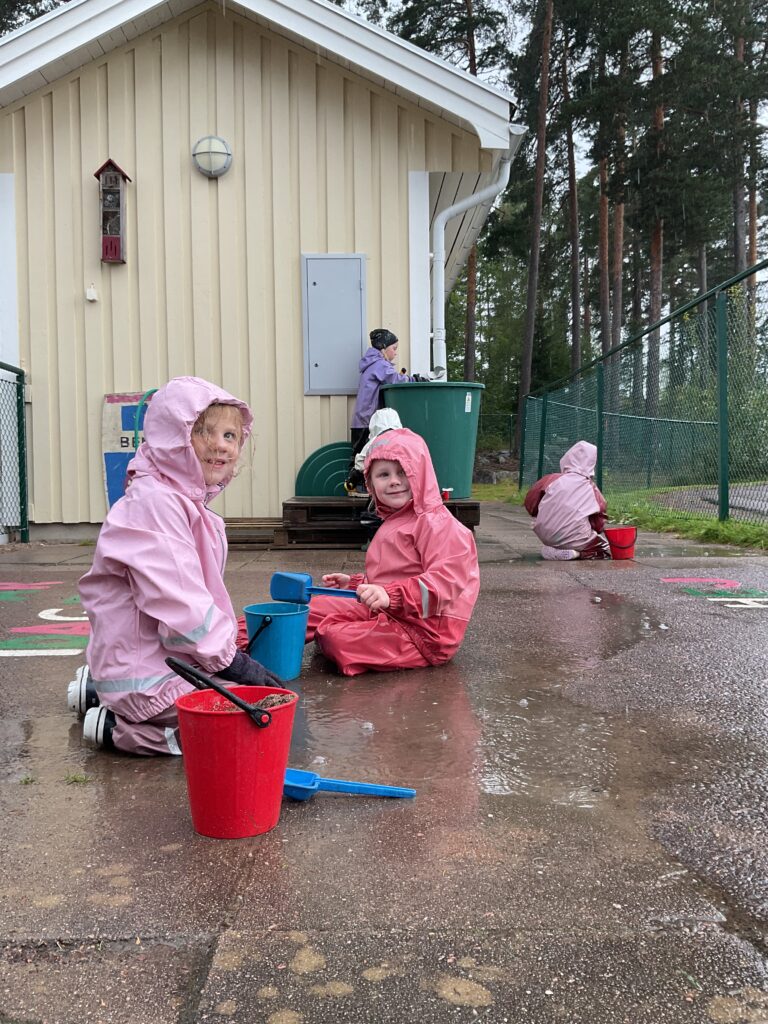 - 15.00 Efter mellanmål genomförs oftast aktiviteter utefter de barn som är kvar på förskolan. Många dagar går vi ut igen vid den tiden